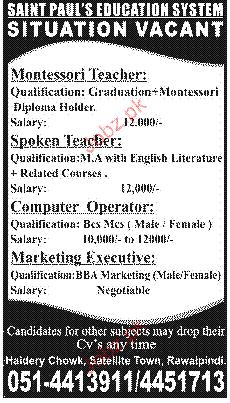 Latest Private Company Teaching Posts Rawalpindi 2025