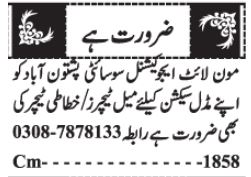 Moon Light School invites applications for job positions advertised in daily Jang dated 4 April 2023 for following vacancies in Quetta, quetta Balochistan Pakistan.