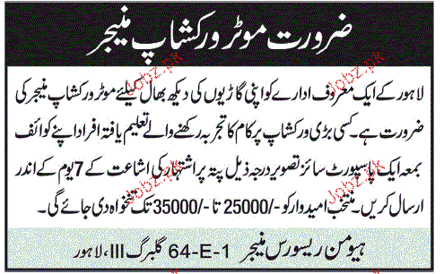 Apply as per details in job advertisement. Login to view further details of how to apply via https://www.jobz.pk online.