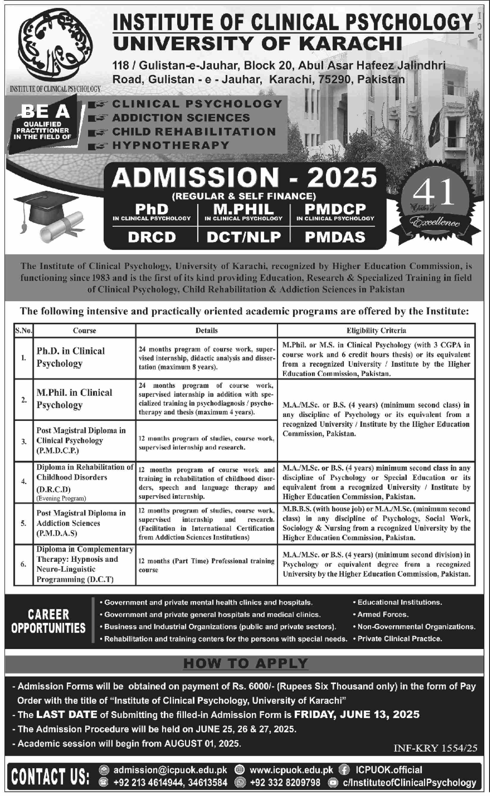 University Of Karachi Main Campus Main University Road, Gulshan-e-Iqbal, Karachi. Cit
