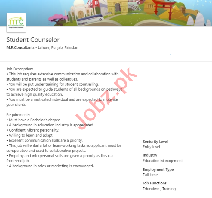 MR Consultants Lahore Jobs 2020 For Student Counselor