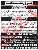 Vacancies in MR Janjua Manpower Advertisement October 2019