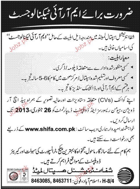 Apply as per details in job advertisement. Login to view further details of how to apply via https://www.jobz.pk online.