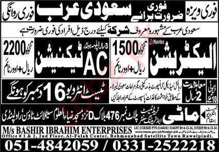 MS Bashir Ibrahim Enterprises is looking for candidates for following posts as per job advertisement published in daily Express Newspaper of December 16, 2024 for location Riyadh, riyadh Saudi Arabia: