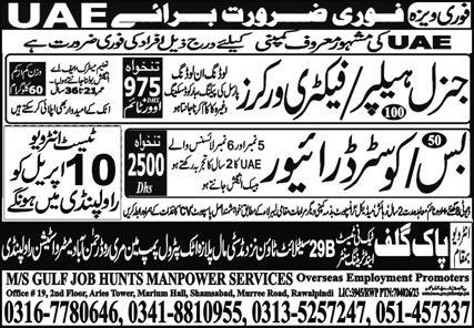 MS Gulf Job Hunts Manpower Services OEP invites applications for job positions advertised in daily Express dated 8 April 2023 for following vacancies in Abu Dhabi, abu dhabi UAE.
