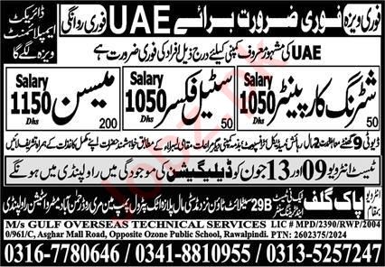Vacant posts including shuttering carpenter, steel fixer and mason are announced in MS Gulf Job Hunts Manpower Services OEP Abu Dhabi, abu dhabi UAE as per 10 June 2024 advertisement in daily Express Newspaper. Primary, Middle and Matric etc. educational qualification will be preferred.