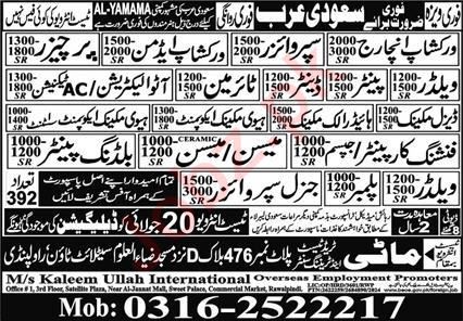 Latest Industrial jobs and others Overseas jobs in MS Kaleem International OEP closing date is around July 20, 2024, see exact from ad. Read complete ad online to know how to apply on latest MS Kaleem International OEP job opportunities. Free transport, medical and accommodation may be available.