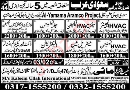 MS Kaleem International OEP is looking for candidates for following posts as per job advertisement published in daily Express Newspaper of December 2, 2024 for location Riyadh, riyadh Saudi Arabia:
