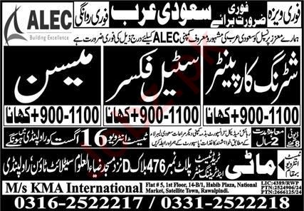 MS KMA International invites applications for job positions advertised in daily Express dated 12 August 2024 for following vacancies in Riyadh, riyadh Saudi Arabia.
