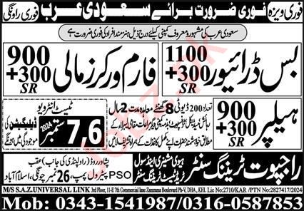 MS SAZ Universal Links is looking for candidates for following posts as per job advertisement published in daily Express Newspaper of August 26, 2024 for location Riyadh, riyadh Saudi Arabia: