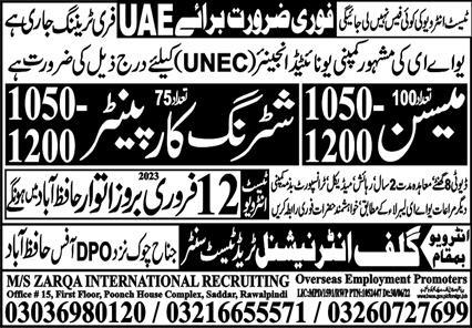 MS Zarqa International Recruiting OEP is looking for candidates for following posts as per job advertisement published in daily Express Newspaper of February 6, 2023 for location Abu Dhabi, abu dhabi UAE: