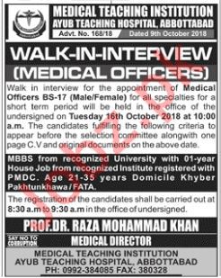 MTI Ayub Teaching Hospital Abbottabad KPK Walk In Interview