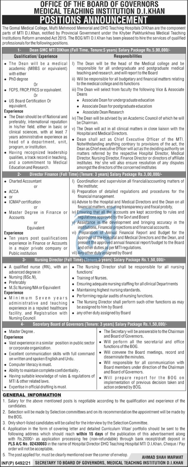 Latest Medical Teaching Institution Medical Posts Dera Ismail Khan 2025