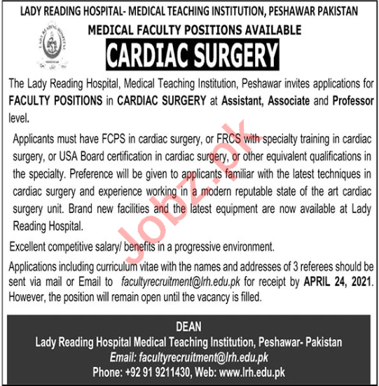MTI LRH Lady Reading Hospital Jobs 2021 For Professors