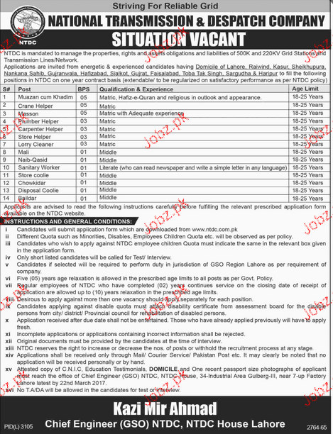 Apply as per details in job advertisement. Login to view further details of how to apply via https://www.jobz.pk online.