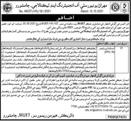 Vacancies in Mehran University of Engineering & Technology Advertisement October 2021