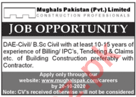 Mughals Pakistan Jobs 2020 For Civil Engineer