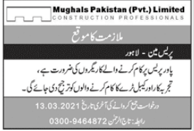 Latest Mughals Pakistan Pvt Limited Labor Posts Lahore 2025