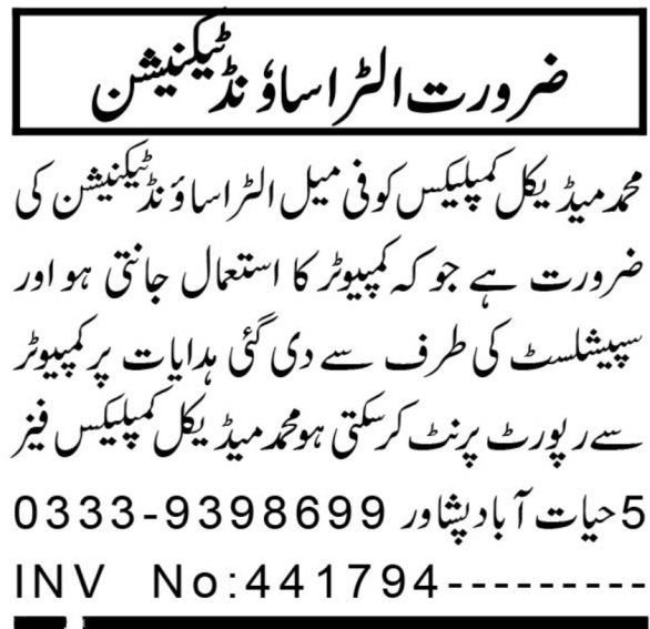 Muhammad Medical College invites applications for job positions advertised in daily Aaj dated 21 May 2025 for following vacancies in Hayatabad Peshawar, peshawar Khyber Pakhtunkhwa KPK Pakistan.
