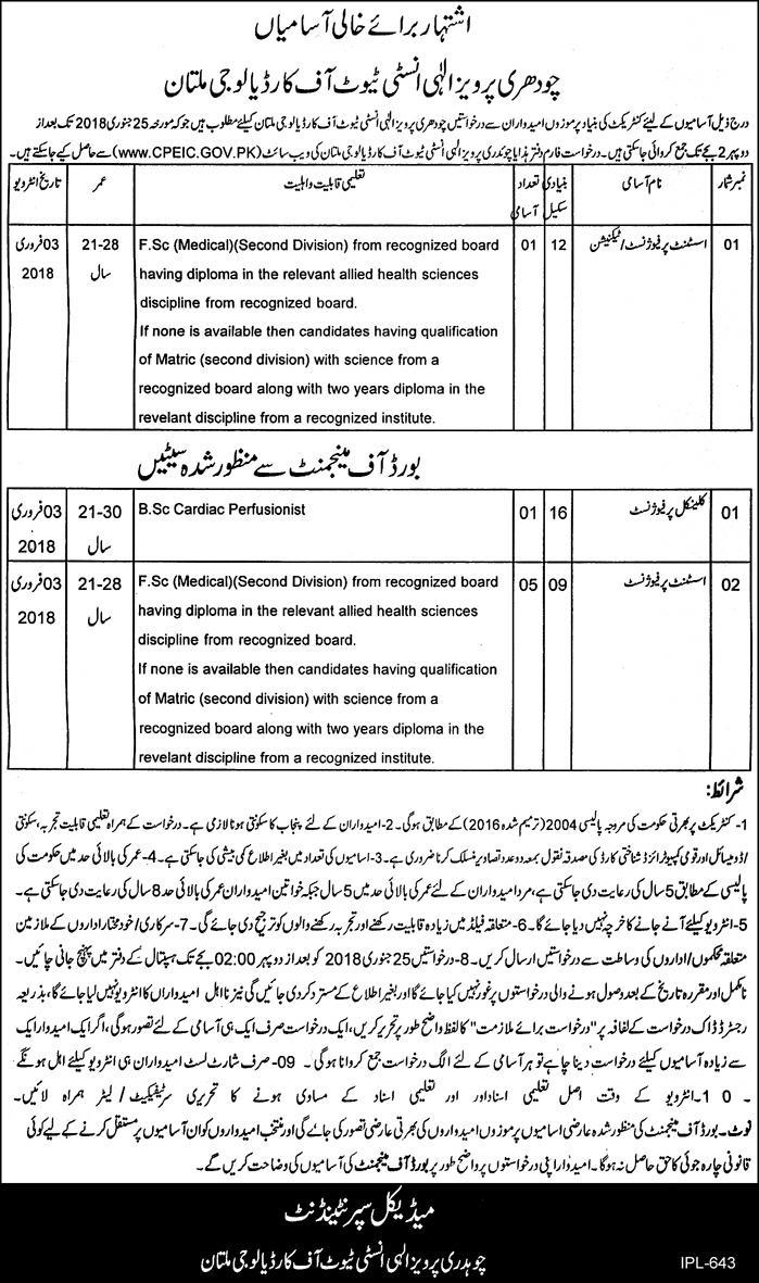 Latest Chaudhry Pervaiz Elahi Institute of Cardiology Medical Posts Multan 2025