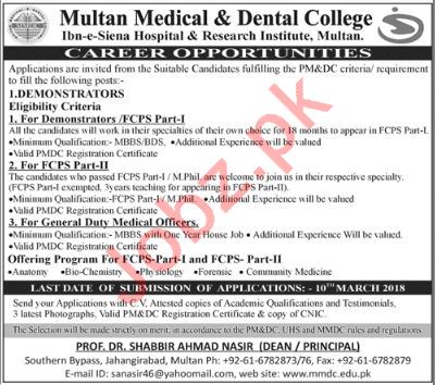 Latest Multan Medical & Dental College Education Posts Multan 2025