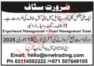 Multinational Company Multan, multan Punjab Pakistan invites applications from eligible candidates for the post of female staff, cook, male staff, driver, maid and it staff as per advertisement of January 12, 2025 published in daily Jang Newspaper. Persons with Middle, Matric and Primary etc. education can apply.