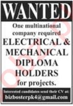 Multinational Company Lahore, lahore Punjab Pakistan invites applications from eligible candidates for the post of mechanical sub engineer and electrical sub engineer as per advertisement of January 26, 2025 published in daily Jang Newspaper. Preferred Education is Intermediate and DAE etc.