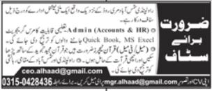 Apply as per details in job advertisement. Login to view further details of how to apply via https://www.jobz.pk online.