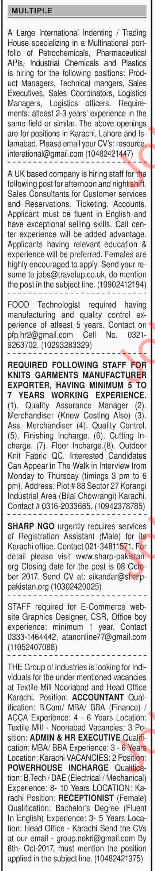Apply as per details in job advertisement. Login to view further details of how to apply via https://www.jobz.pk online.