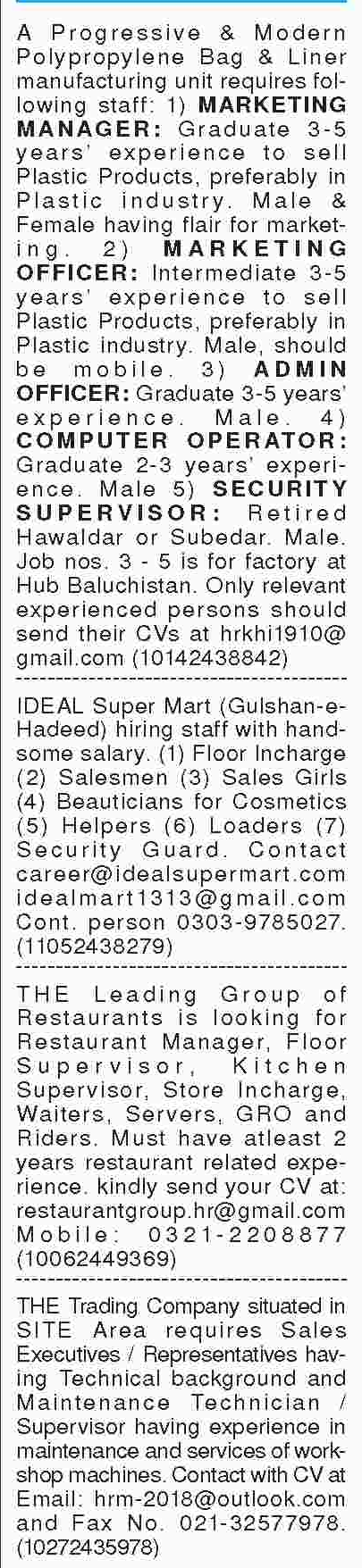 Apply as per details in job advertisement. Login to view further details of how to apply via https://www.jobz.pk online.