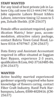 Apply as per details in job advertisement. Login to view further details of how to apply via https://www.jobz.pk online.