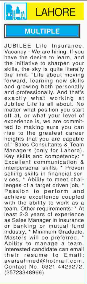 Apply as per details in job advertisement. Login to view further details of how to apply via https://www.jobz.pk online.