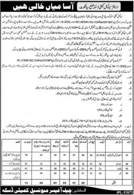 Municipal Committee Daska, daska Punjab Pakistan invites applications from eligible candidates for the post of plumber, chowkidar, disposal operator and sewerman as per advertisement of November 18, 2022 published in daily Khabrain Newspaper. Matric, Middle and Primary etc. educational qualification will be preferred.