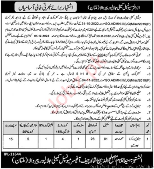 Municipal Committee Jalalpur Pirwala Class IV Jobs 2022