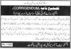 Municipal Corporation Sialkot Job Corrigendum 2022