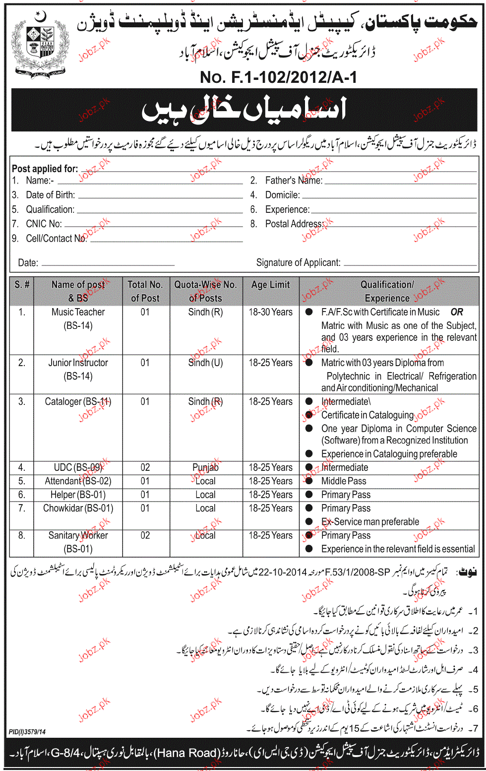 Latest Capital Development Authority CDA Teaching Posts Islamabad 2025