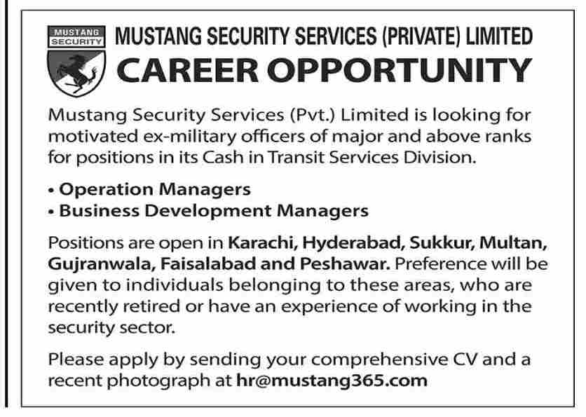 Vacancies in Mustang Security Services Pvt Ltd Advertisement December 2021