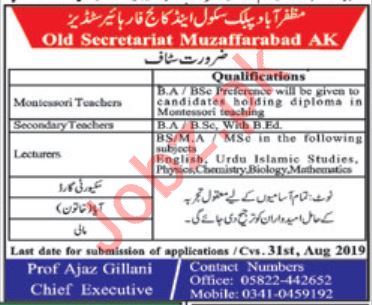 Latest Muzaffarabad Public School And College Education Posts Muzaffarabad 2025