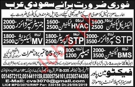 Latest Facto Manpower Overseas Employment Promoters Industrial Posts Saudi Arabia 2025