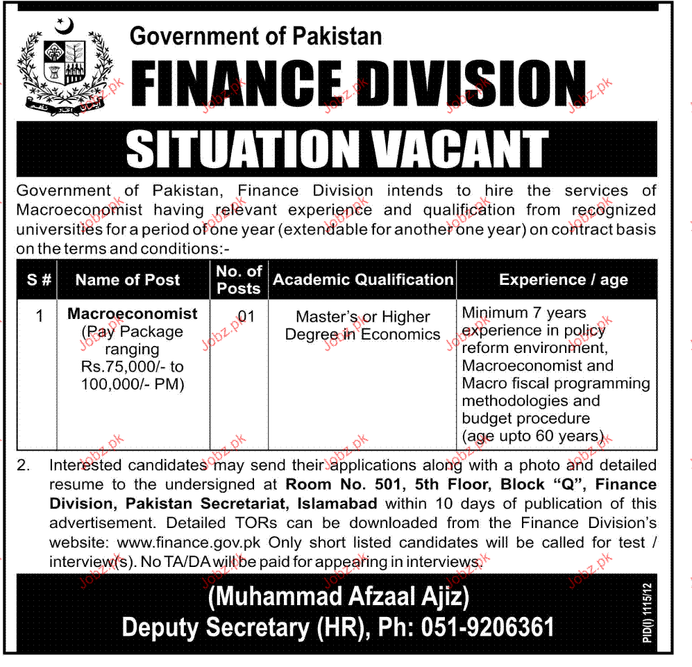 Apply as per details in job advertisement. Login to view further details of how to apply via https://www.jobz.pk online.