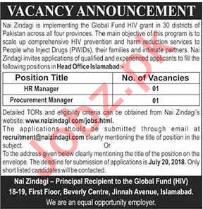 Nai Zindagi Islamabad Jobs 2018 for HR Manager