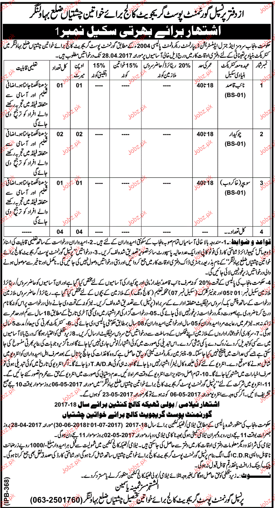 Todays New Jobs in Bahawalnagar