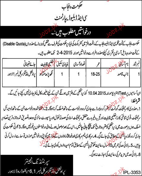 Apply as per details in job advertisement. Login to view further details of how to apply via https://www.jobz.pk online.