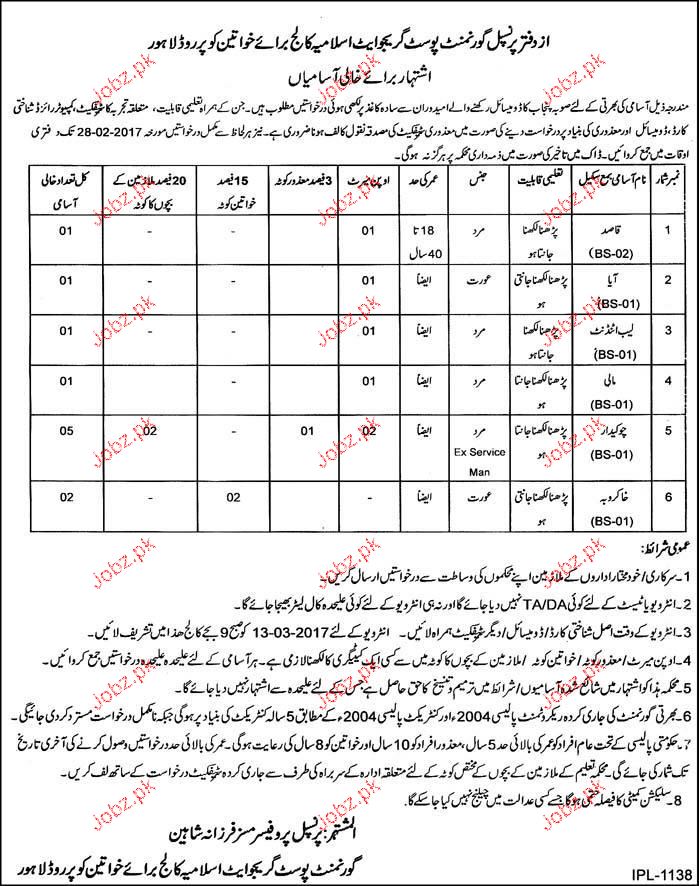 Naib Qasid, Aya, Lab Attendants Job in Postgraduate Isamia