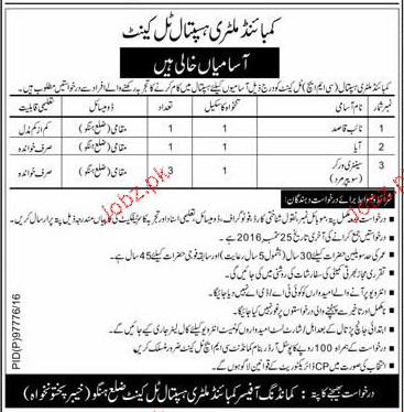 Naib Qasid, Aya, Sanitary Workers Job In CMH