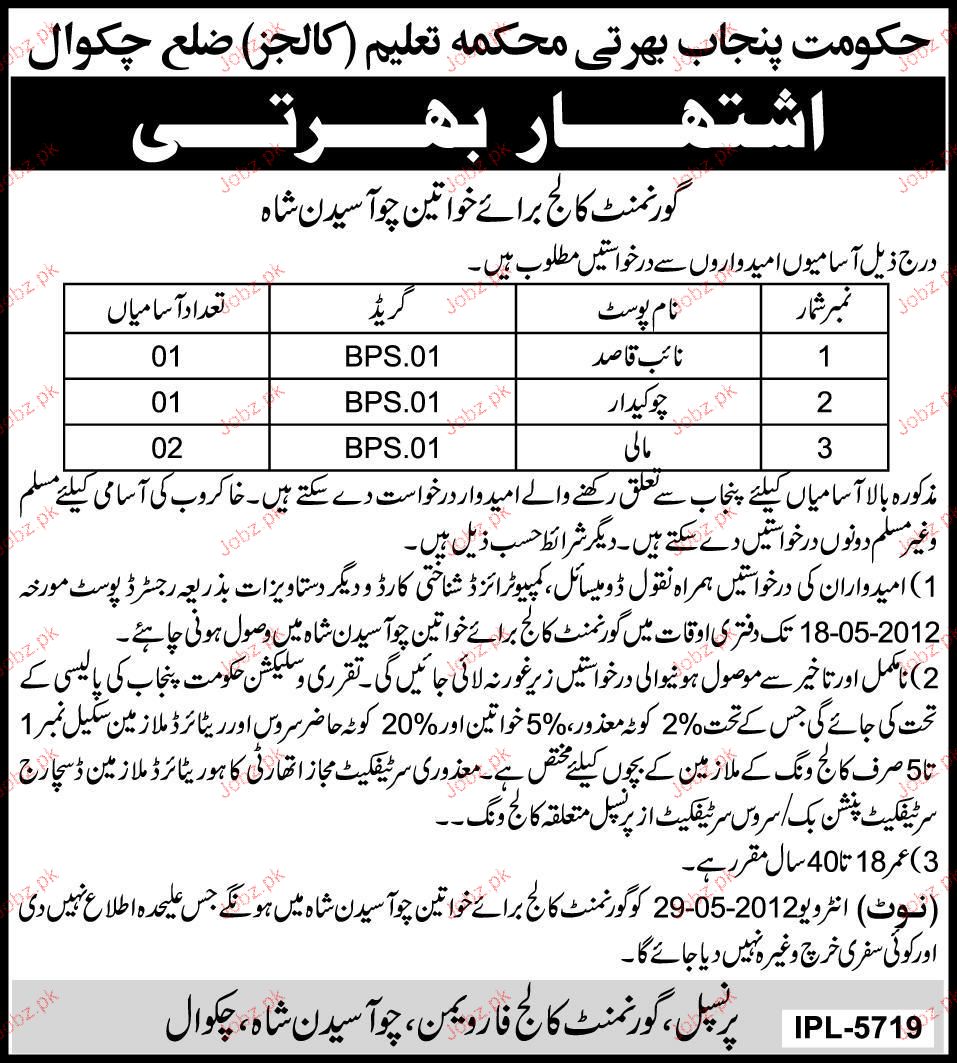 Naib Qasid, Chawkidar And Mali Job Opportunity