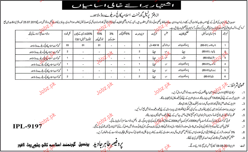 Apply as per details in job advertisement. Login to view further details of how to apply via https://www.jobz.pk online.