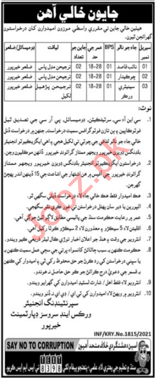 Naib Qasid & Chowkidar Jobs In Works & Services Department