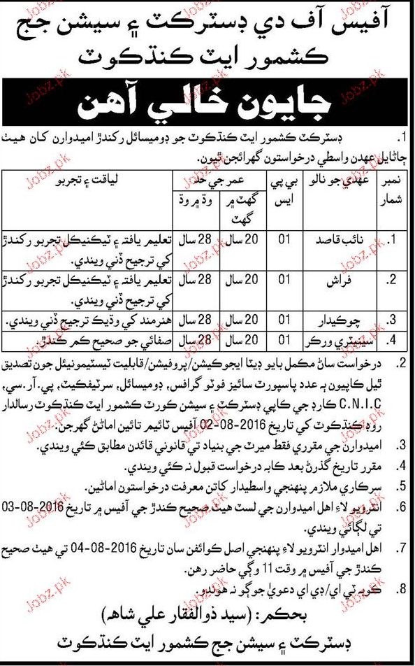 Naib Qasid, Farash, Chawkidars and Sanitary Workers Wanted