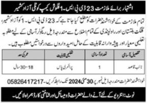 Vacant posts including naib qasid are announced in Pakistan Army Kotli, kotli AJK Pakistan as per 5 June 2024 advertisement in daily Khabrain Newspaper. Preferred Education is Primary etc.